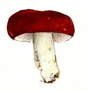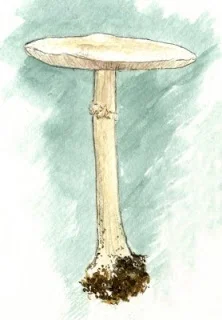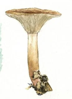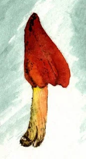 Fungi Studies Fungi of the Blue Ridge Apr 19 Written By Devin Floyd Several years back I did some illustrations for a children's book. During the project lots of my time was spent in the woods looking for subjects to draw and these mushroom watercolor sketches were studies done as part of that project. The mushrooms were found on a north facing slope at about 2900' in a forest composed mostly of chestnut oak, striped maple, poplar, and rhododendron. The forest floor at this locality is quite dense with herbacious plants and there are a few scattered large red spruce trees that appear to be left-overs from a cooler place in time. The topsoil is very acidic and contains lots of rich organic material. The soil's parent rock is a 1.1 billion year old quartz monzonite. The rock contains very fine and densely packed striations of dark minerals and I suspect that these mafic minerals provide mineral rich soils. The site is about 1.5 miles from the Grant Grange and about 6-8 miles from Mt. Rogers (as the crow flies).If anyone knows more about these mushrooms, let me know. I have a wild guess for the names of a couple of them. Mushrooms Devin Floyd