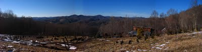 For a glance at highland weather, it is 35 degrees and cloudy today at Doug’s house, with mountain peaks nestled in the clouds. Doug expects 3-6 inches of snow Saturday. Keep in mind that elevational differences. Doug's land sits at 3,200 - 3,400', and the peaks near his house rise to between 4,400-4,600 feet. Remember that the air cools on average 3.4 degrees F with each 1,000 feet of climb, which is just enough to give Doug a little extra snow every year!When he was at White Top Mountain (one can drive up to 5,440 - 5,520 feet) in Virginia on Tuesday, he encountered 2 inches of snow and a crystal clear day! Mt. Mitchell could be seen on the horizon, a view of nearly 65 miles!