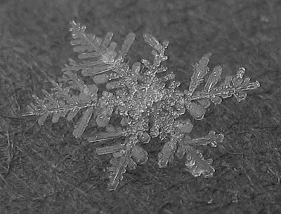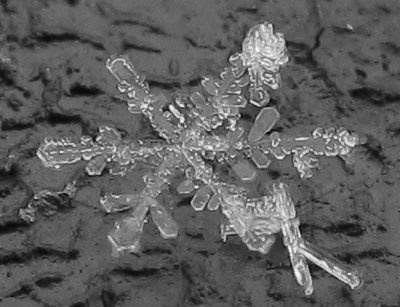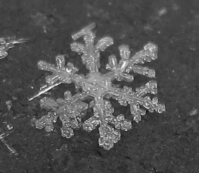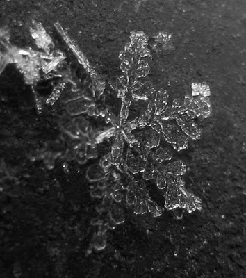 We laid black pieces of construction paper on a bench during yesterday's snow. We left them in the frigid air for two hours prior to beginning. The images were captured with a point-and-shoot camera