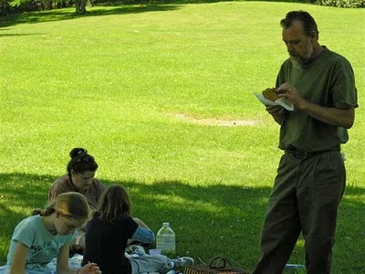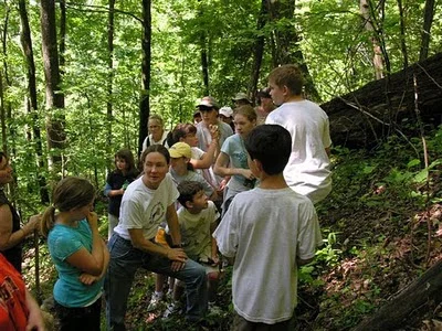 Coordinating with Lisa Shaw, Southwest Virginia Home Educators Administrator, BRDC conducted a field trip at Cumberland Knob from 9AM until noon.Fifteen kids strong, with several parents, broke into two groups and hit the trail.Guiding for BRDC were Robert Perkins and Scott Jackson-Ricketts.Bob brought his brother Bill along, who helped keep an eye on the scramble into the woods.