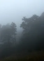 (below) is from Sunday, Oct. 3, at about 5,300 feet on Whitetop Mountain. Water droplets covered all details as we passed through spruce, grassy balds, and a yellow birch forest. When we departed from lower reaches for our trek to the mountain, the temperature was 56 degrees (at 2900') and the sky was dropping drizzle. Upon arrival we were way up in the clouds...41 degrees, 80% humidity, wind and sleet. In the face of high winds, cold air, and other challenging forces, the beauty and diversity is always striking, on all scales. The reduced visibility brought into sharp focus the details upon the ground in front of us...everything is in flux as autumn marches toward winter...and the resulting colors are quite a show. On a clear day, the eyes are drawn to the horizon... the view is arguably the best in the eastern United States.