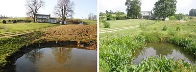 There is an old saying, to make an omelet you must break eggs. It is equally true that to restore and create new habitats you must modify what is present. This can be painful for those of us that like to think about ourselves as protectors of nature. However if I have learned one thing in life it is that biodiversity requires maintaining variety in habitat, and this often requires intervention by the landowner. Thus we maintain our grasslands by mowing, burning, planting and sometimes applying herbicides to kill unwanted exotic weeds. Similarly we maintain forest gaps by bulldozing openings and cutting selected trees and saplings. Creation and restoration of wetlands certainly requires similar kinds of intervention. The two main approaches we have used are to divert channelized streams back into what used to be wet meadows, and to excavate small ponds of various depths and sizes and build dams to hold appropriate amounts of water.