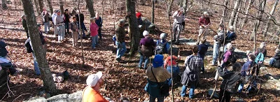 The crew of nearly forty people explored the Jack Albright Trail (opened 2005) and the old Appalachian Trail near HumpbackRocks. Chip Morgan was the guide, and he was assisted by Russell Fitzgerald who shared the history of the local people from the long association his family has with this area.