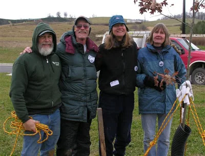 with me to Jones Nursery, Woodlawn, Va., on Tuesday, November 23rd, I met with Charlie Jones and Roger Hollinger, who helped me pick out and load up what $250.00 could buy. Charlie took an interest in our project, and not only helped me find the healthiest trees, but donated two large sugar maples to the cause. Charlie and Robert were incredibly helpful, including loading me up with stakes and pipe to help protect the trees from wind and deer.