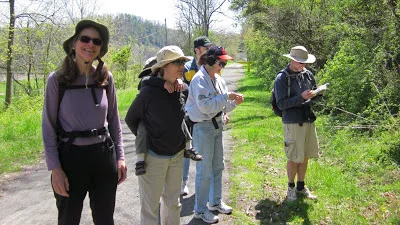 The sunny Sunday after the raging storm of April 16 was high-season for spring wildflowers on Blue Ridge Discovery Center's first wildflower walk of the season. There were ten of us who shared our enthusiasm and curiosity in a free-flowing and lively exploration along a portion of the New River Trail State Park near Fries, Virginia.