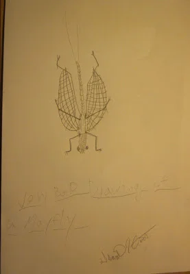 Before last light, a few of us went running through the riparian field, sweeping insect nets in hopes of catching, well, anything.Lots of lightning bugs, grasshoppers and various other insects were snagged, but the objects of our survey eluded us until dark.Then, as the lighted sheets began to work their intended magic, a few stoneflies arrived, soon followed by mayflies and midges galore.At times, we were literally breathing bugs.The ‘artists’ among us got busy sketching while the rest of us netted and examined our hatch catch. In total we keyed out adult forms of mayflies, stoneflies, caddis flies, alder flies, midges, crane flies, damsel flies and a plethora of moths.