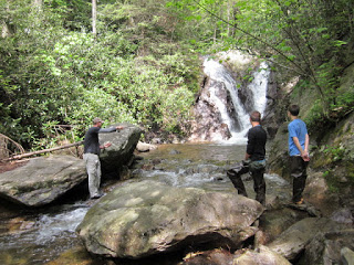 Five young men with Oak Hill Academy’s Boy Scout Troop #5, accompanied by one parent, Marci Hart, and one of their hardy leaders, Buddy Halsey, headed up the Cabin Creek Trail (Grayson Highlands State Park) for a morning survey. This amazing, oft described as pristine, stream begins in the Mount Rogers NRA, and is known to hold endangered native brook trout, protected in the park. We owe a lot to the Department of Conservation and Recreation as well as the park for giving BRDC permission to survey. And hats off to Kevin Kelley once again for facilitating our programs in GHSP.