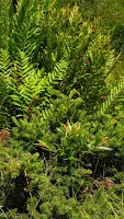 Inquiries followed questions. The group began to look for the required features: greater than 50% sphagnum moss ground cover, large hummocks of cinnamon fern, silky willow, rhododendron and highbush blueberry shrubs, red spruce, red maple, tawny cottongrass, and last, but definitely not least: that super squishy ground that sinks, moves and rebounds beneath your feet!