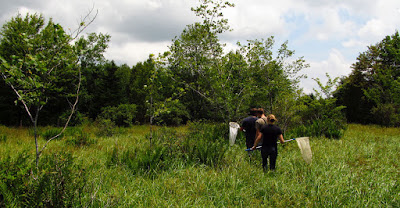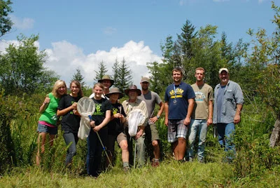 during the first part of the day the story of this ecosystem began to unfold. Our understanding of the parts of the ecosystem and how they related grew steadily. The sun emerged just prior to noon and the afternoon hours were alive with moths and butterflies. By day’s end we had thoroughly observed and documented more than 110 different species and dozens of unique micro-habitats within the larger bog. Some highlights were Appalachian brown butterflies, northern bobwhite, magnolia warbler, canada warbler, steeplebush, swamp rose, lesser Canadian St. John’s wort, black bear, and a very diverse array of rushes, sedges, and other grasses. Maybe the most interesting discovery of the day was the recognition of habitat variety within the Appalachian shrub bog. The seeps, pools, and gurgling streamlets, the hummocks of orchids and ferns, meadows of grass and sphagnum...the colonies of silky willow, swamp rose, and rhododendron...and many interesting plant communities. Each of these little areas held an entire world of unique living things that would take a lifetime to fully explore!