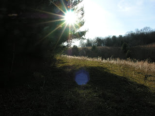 Along this road, a large bird flew into the edge border made up of mostly white pine. As we drew closer, it took off, revealing to us a broad winged hawk incarnate. No, I did not get a picture of that. The western border opens up into another large cattle field. With the sun laying low, I took one more photo of the field inflamed by our late autumnal light.
