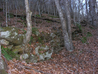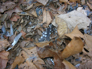 Just past this rock wall, we discovered a pile of feathers...more than likely those of a downy woodpecker.