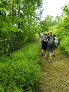 We began by meeting in 'the old farm house' where we shared a few tips on bird identification techniques, and instructed the kids to take detailed field notes on what we might find to apply to the field guides upon our return. We began by climbing a small hill above the camp grounds, wandering through a fairly recent timber cut, along a wide trail. Stopping along the way, we found several early-succession adapted bird species, including indigo bunting, Eastern towhee, prairie warbler, and Carolina wren, while tree swallows, barn swallows, chimney swifts, crows, turkey vultures, blue jays and one pileated woodpecker offered fly-by observations.
