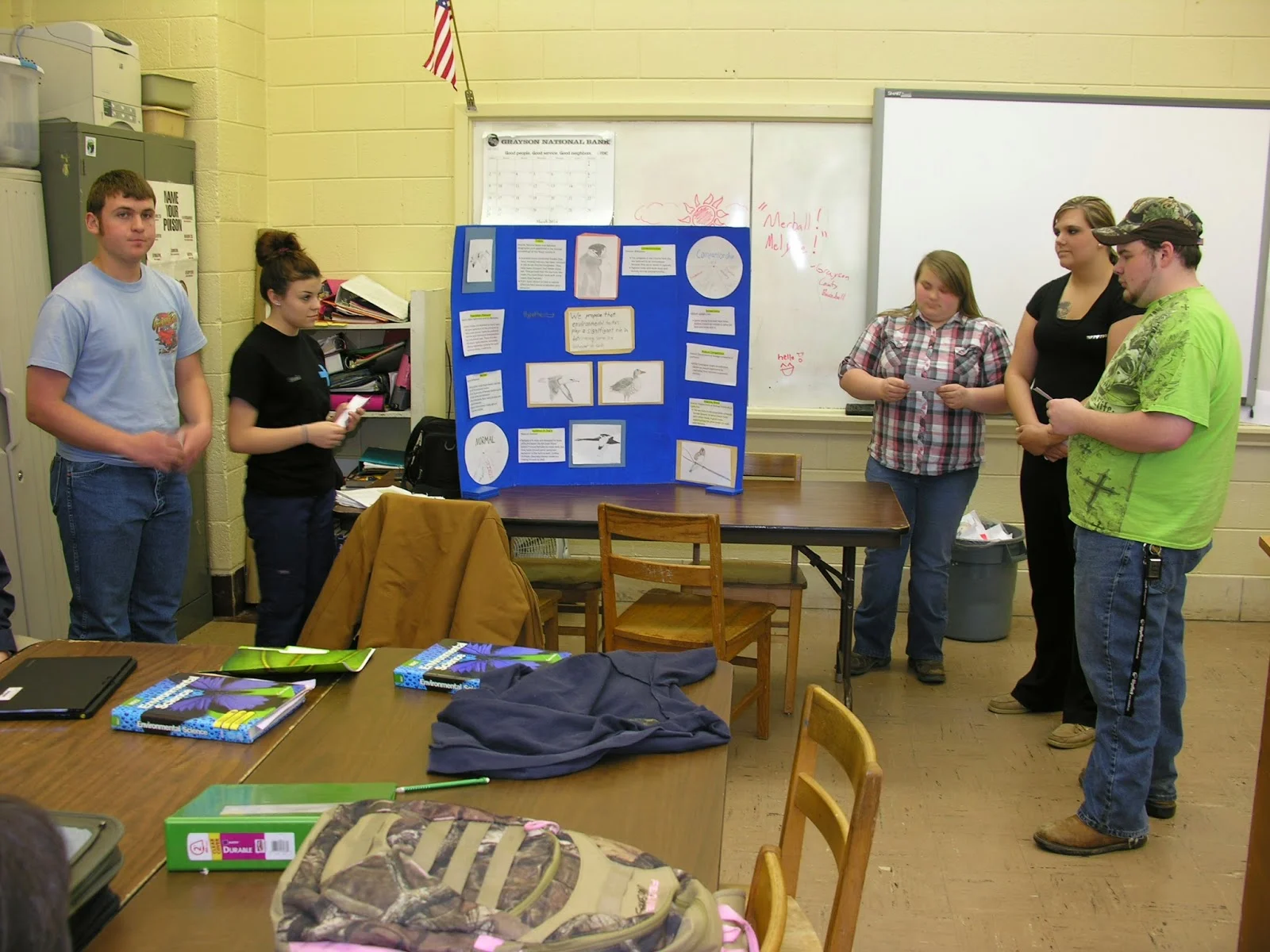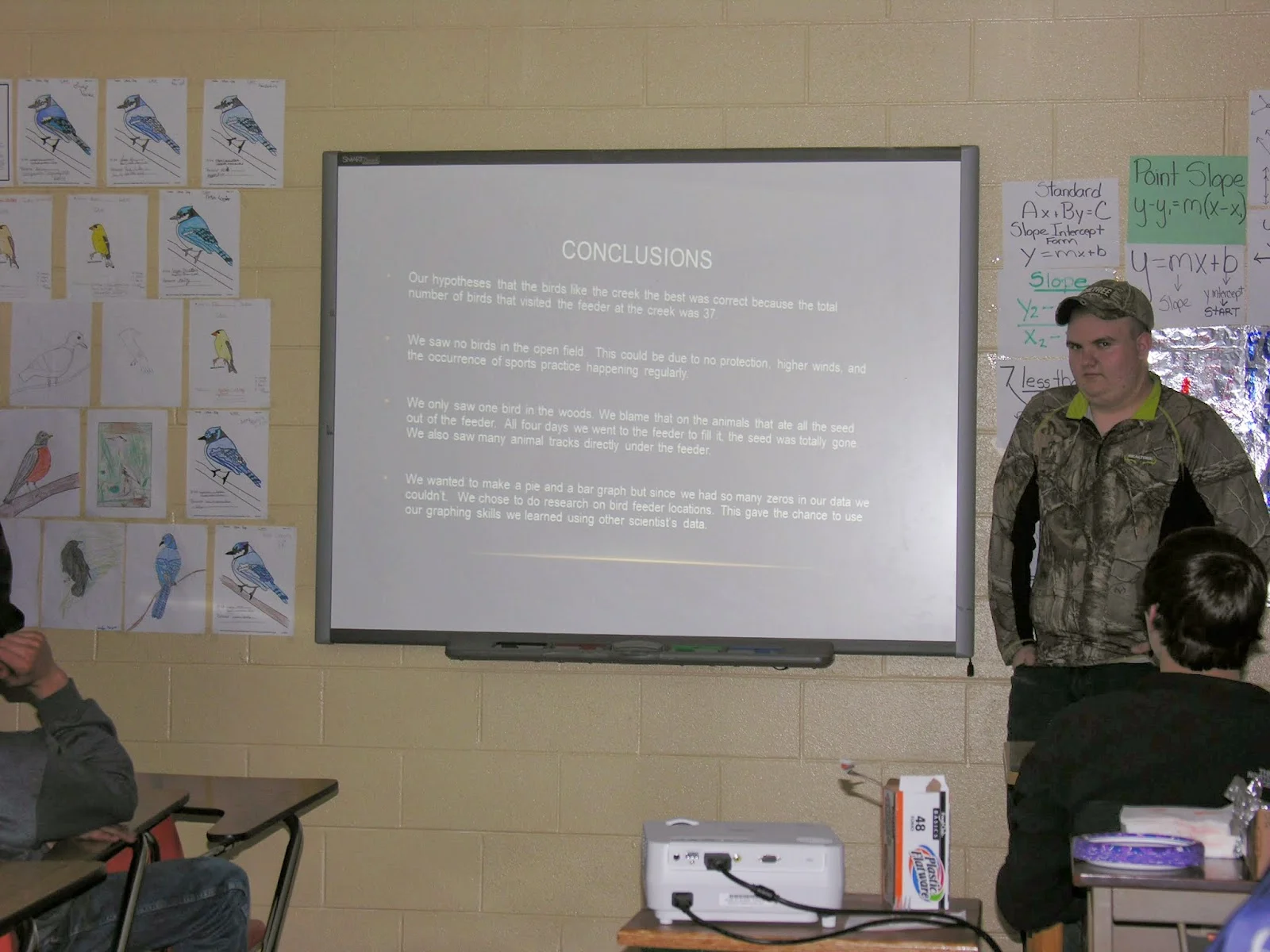 All but one presentation was delivered through PowerPoint. The group above chose to create a poster with hand drawn pictures of the focus birds. Michael is the artist, seen at the left.
