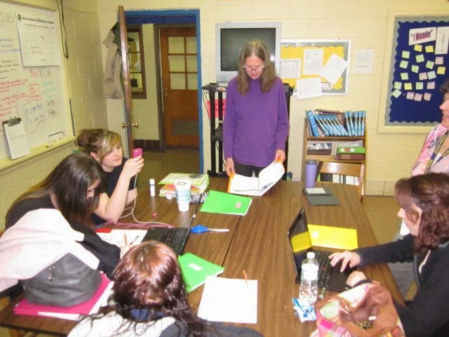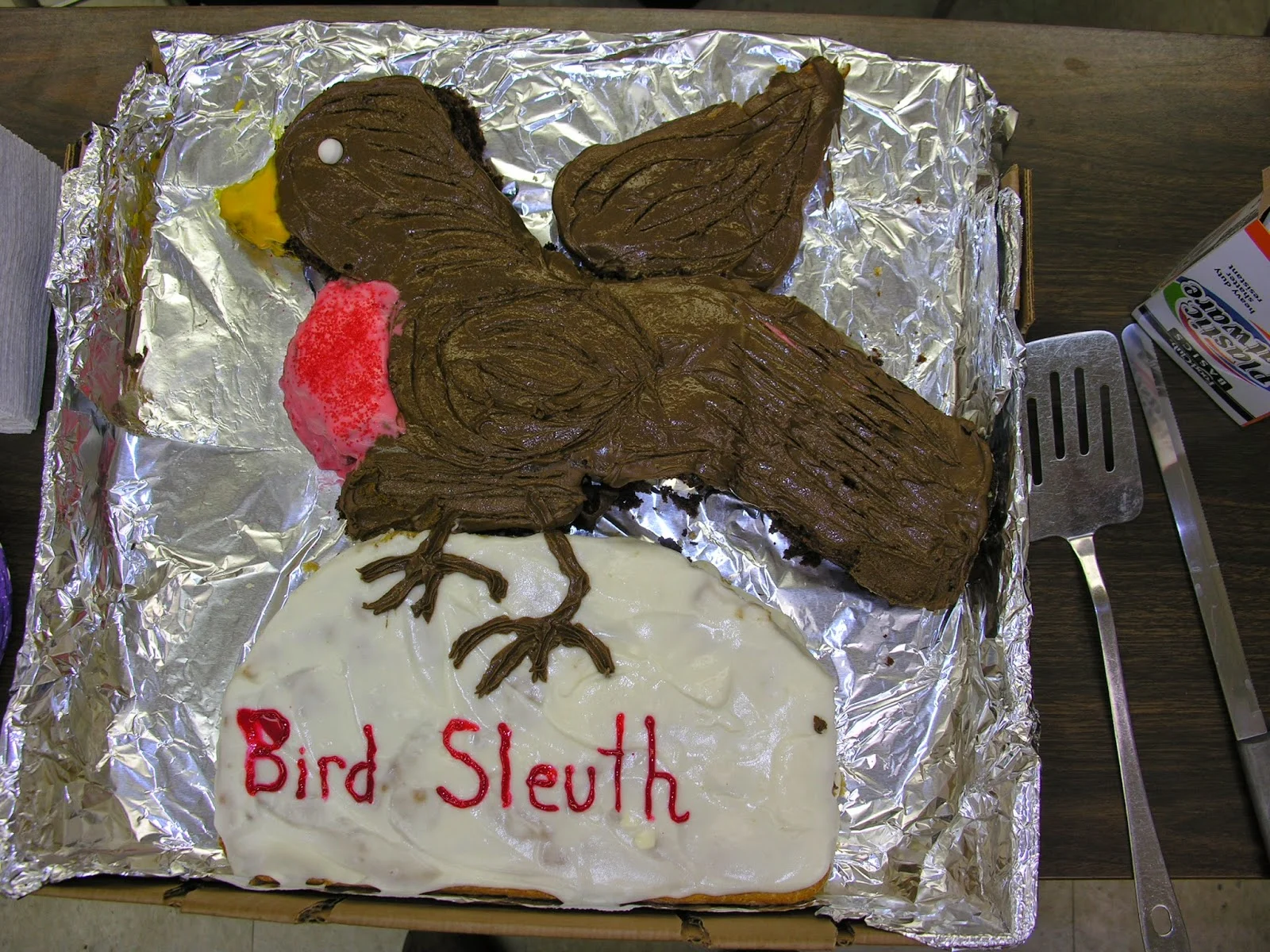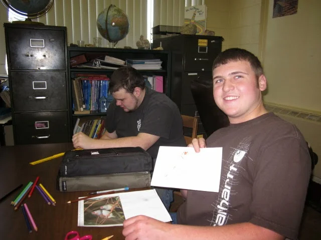After weeks of often interrupted effort, snow, sleet and hail held off for Bird Sleuth's grand finale on Friday, March 21st. Bird Sleuth, an educational tool box designed by Cornell's Lab of Ornithology is a project managed under Avain Adventures, a BRDC program. Eight study groups from two Grayson County High School classrooms offered their presentations to each other, their teachers, and a delegation of school dignitaries. Ms. Greif made the celebratory cake seen above. And below, we observe the students working on their presentations.