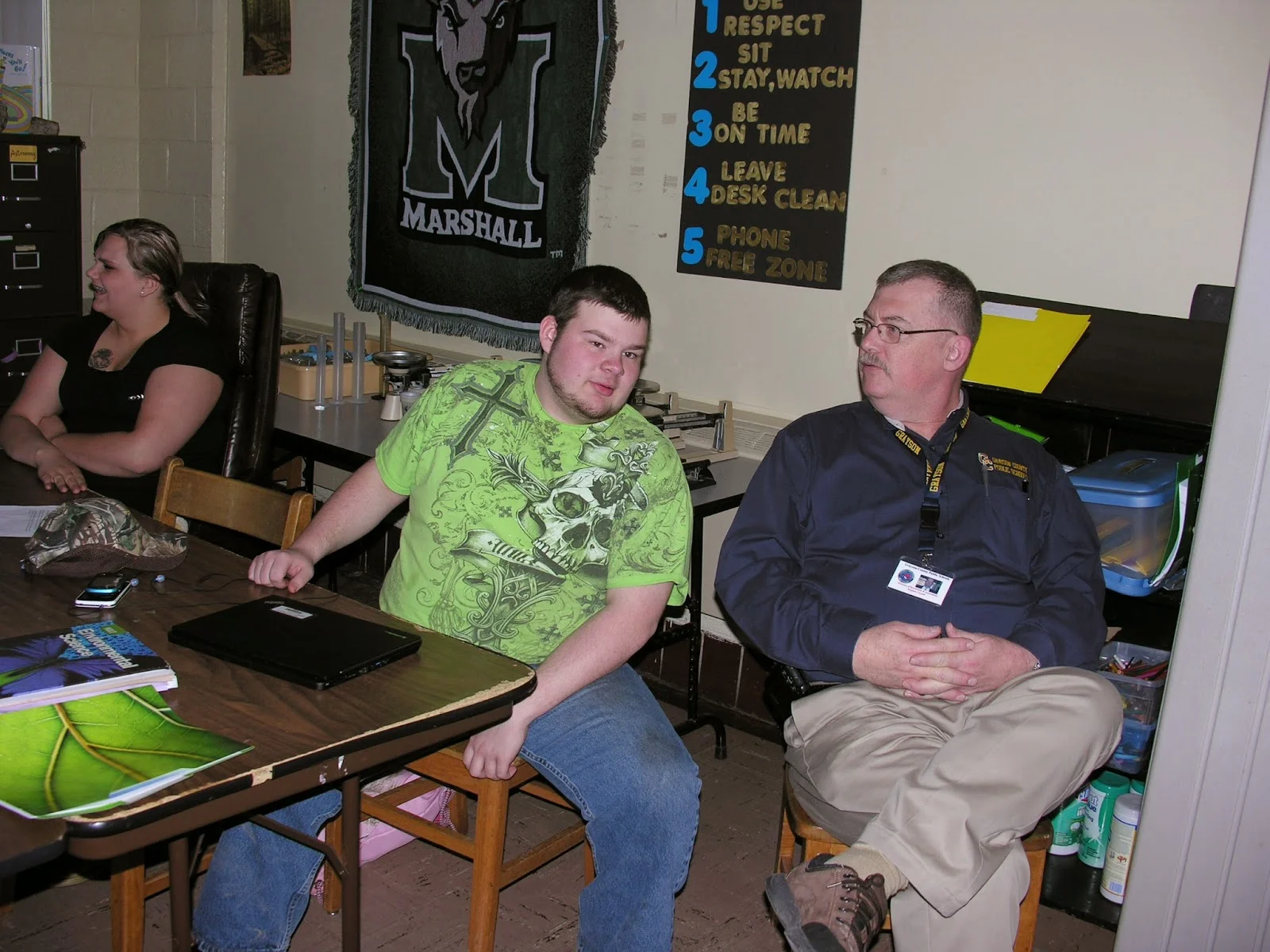 Director of Instruction and Assessment), Brandi M.Ray (principal of GCHS) and Kevin Chalfant (Grayson County School Superintendent) made up our delegation of dignitaries, and we were all pleased that they had and made the time to be there! Mr. Cornett converses with Allen (student) below.