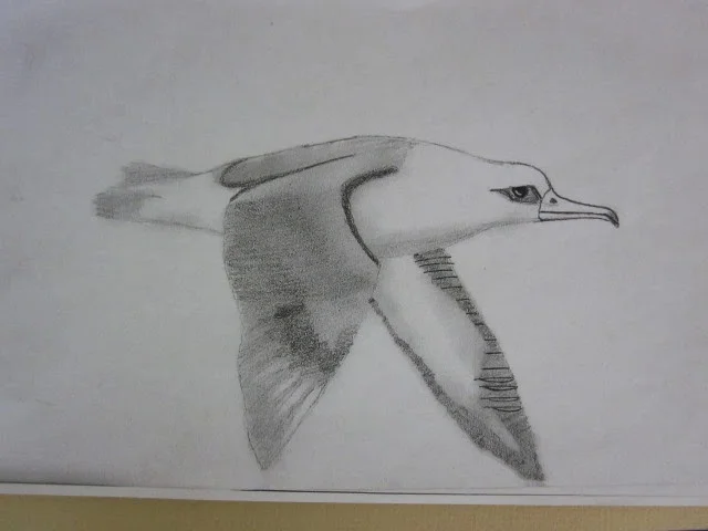 In the educational tradition of BRDC, journaling and sketching as documentation tools were encouraged...as was spending as much time outdoors as possible. The group below is studying a song sparrow and its flight style (as compared to the black vulture). Both species were commonly seen on or above the school campus, and provided strong comparisons between a bird with small wings and one with large wings.