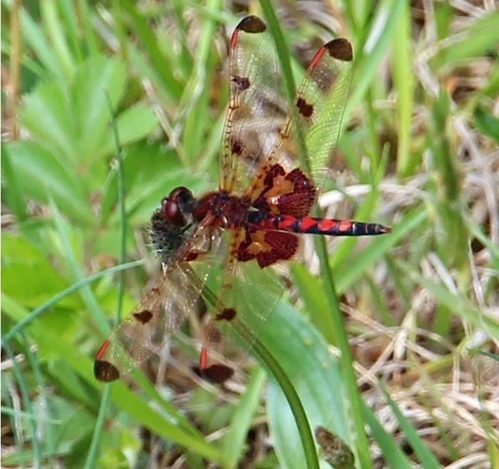 Last Wednesday (5?14/14) my wife and I found a number of active dragonflies at Bass Lake on the outskirts of Blowing Rock, Watauga County, NC. We saw eastern pondhawks, common whitetails, Carolina saddlebags, and Calico pennants. The pennants sat still long enough for me to get a decent photo. Enjoy!