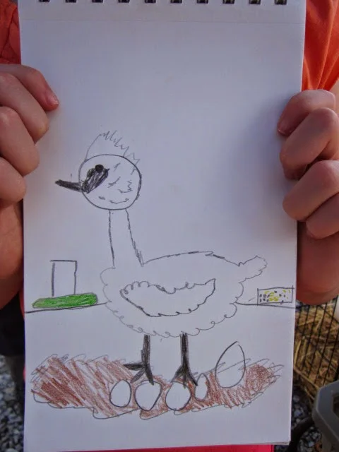 On both May 30th and June 6th, BRDC set up shop and waited for the kids...who did not disappoint. Kids love critters, so at our first display, we brought an assortment of herps: two turtles, a salamander, one frog, and a snake. Heartmoss Farm considered our menagerie lacking so loaned out a silkie chicken for the morning. This assortment gave the kids choices for our sketching program, which is often a part of our demos and field excursions.