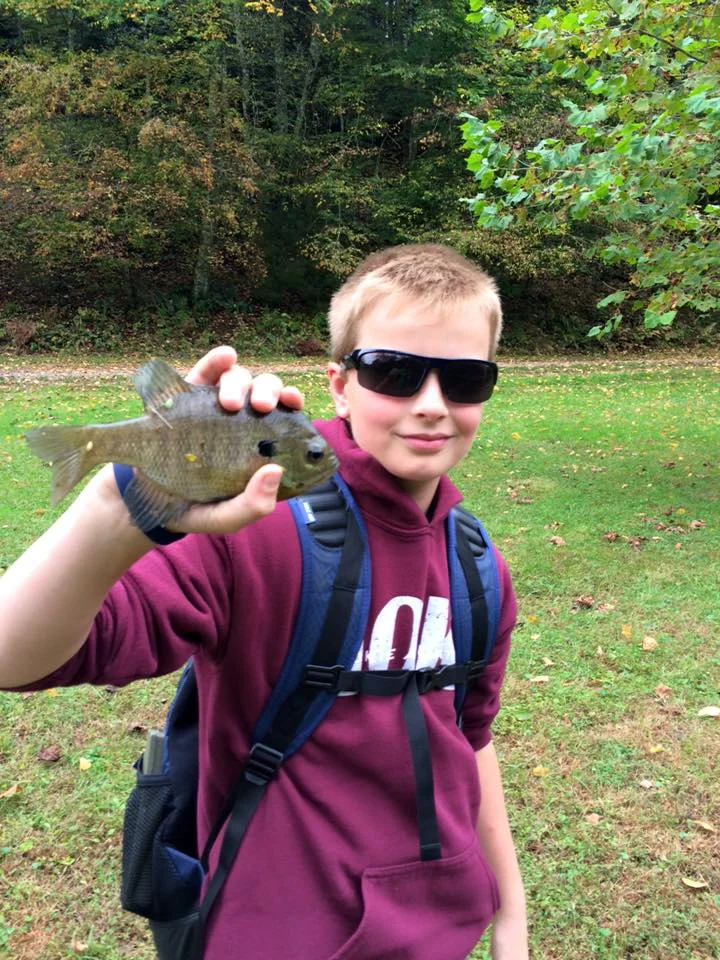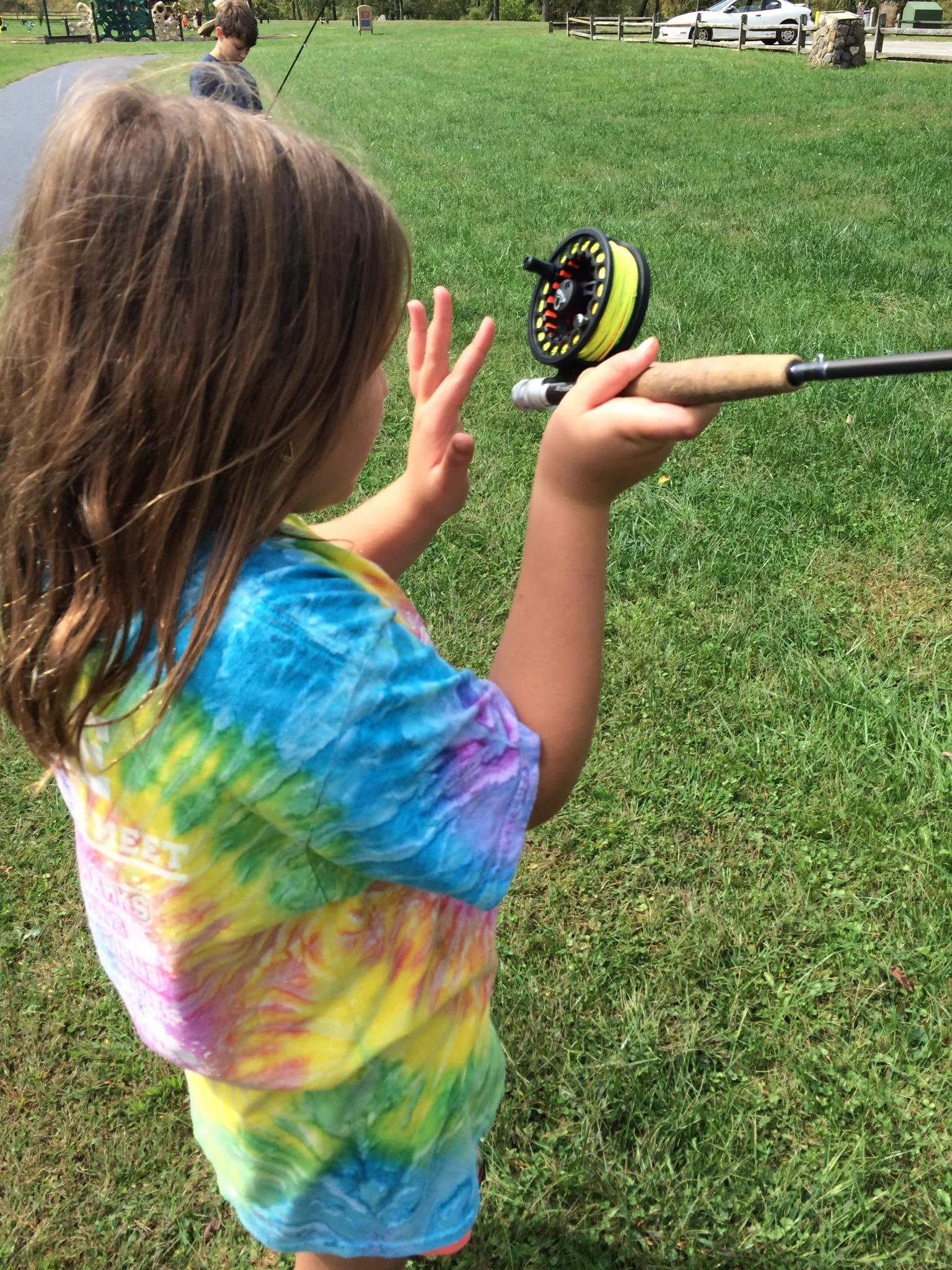 The rain held off for us once again on Thursday so we commenced to setting up our fly rods and reels. We did a quick tutorial on how to cast fly line and off to the creek we went with our handmade flies to catch some fish! Lack of trout sent us to a fish pond where we changed our flies from woolly buggers to poppers. Several students caught bluegill and were very pleased with their catch!