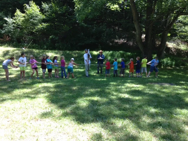 Heidi Breedlove primed the fire for a hotdog roast, so lunch was next. Lining up 17 kids around a fire pit was at least as challenging as getting all of the relish and condiments on the dogs, but everyone was well-fed and soon ready for the afternoon’s signature camp adventure program.