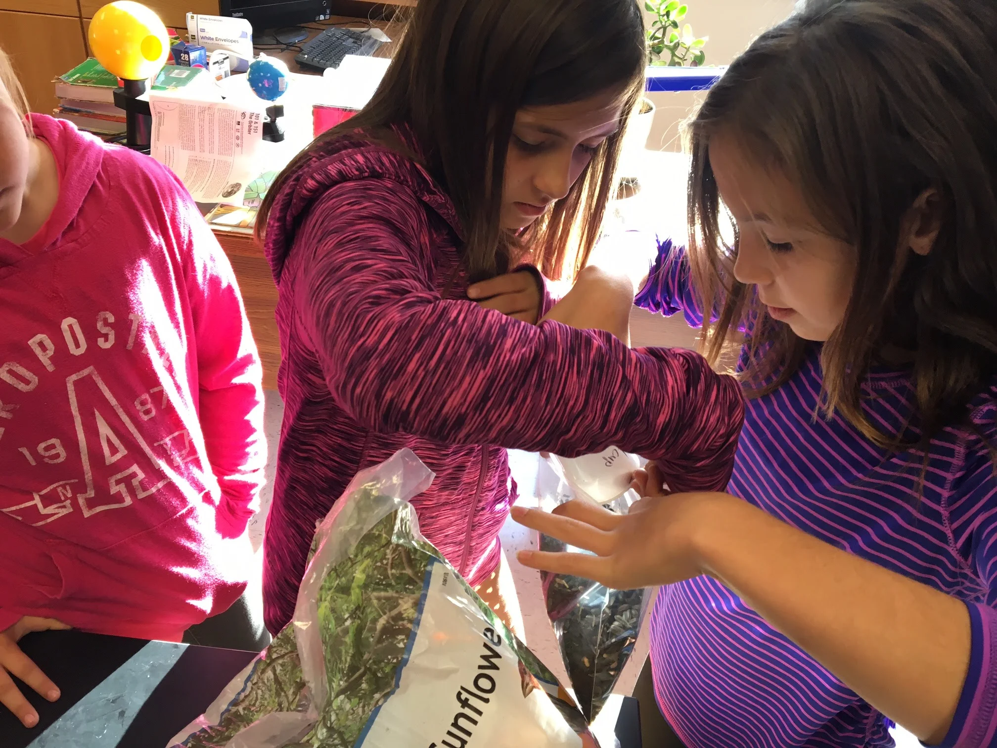Following this, students worked in groups to construct three different types of feeders that birds would be attracted to. The first was a platform feeder. This could be mounted on a post or hung from a tree or hook. The second was a suet feeder that would hold a cake of suet mixed with fruit and nuts. And lastly, a sock feeder that held thistle seeds. The students were instructed on proper placement of these feeders to both attract birds and provide them with safety and security.