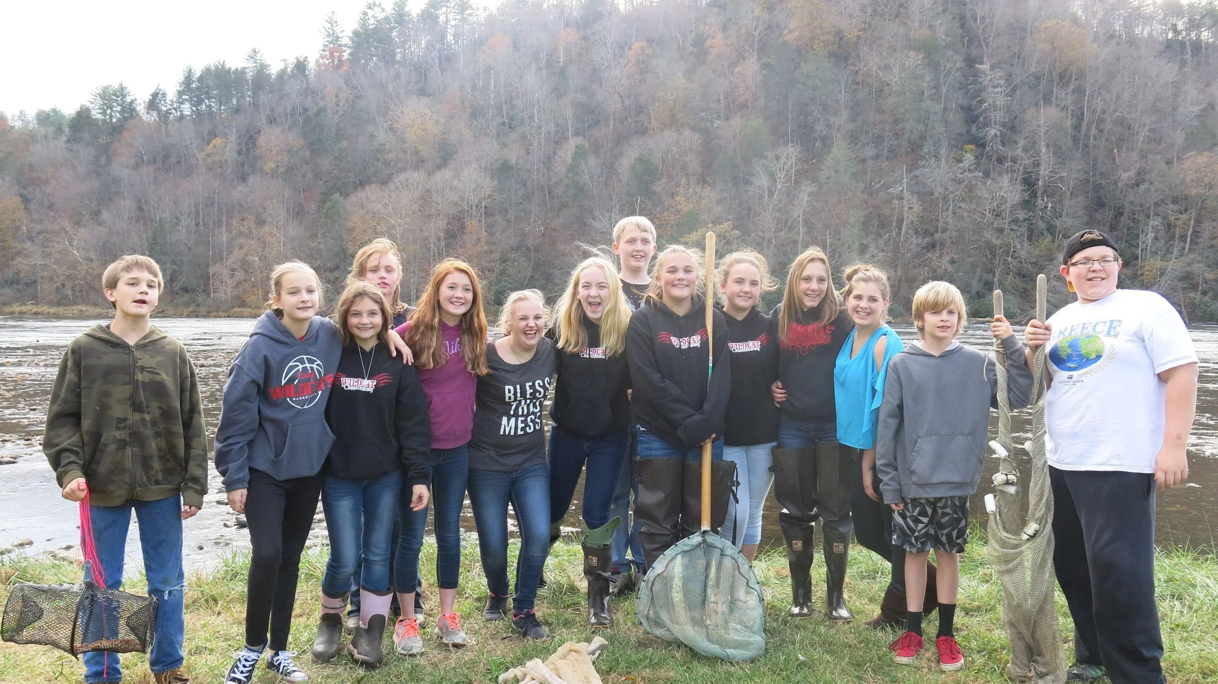Friday, November 11, 2017, Ms. Blankenship's 7th graders from Fries School joined Blue Ridge Discovery Center's staff & volunteers for a day of Aquatic Adventure. Students rotated between stations set up along the New River, just below the school, and participated in citizen science activities.