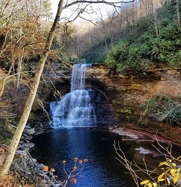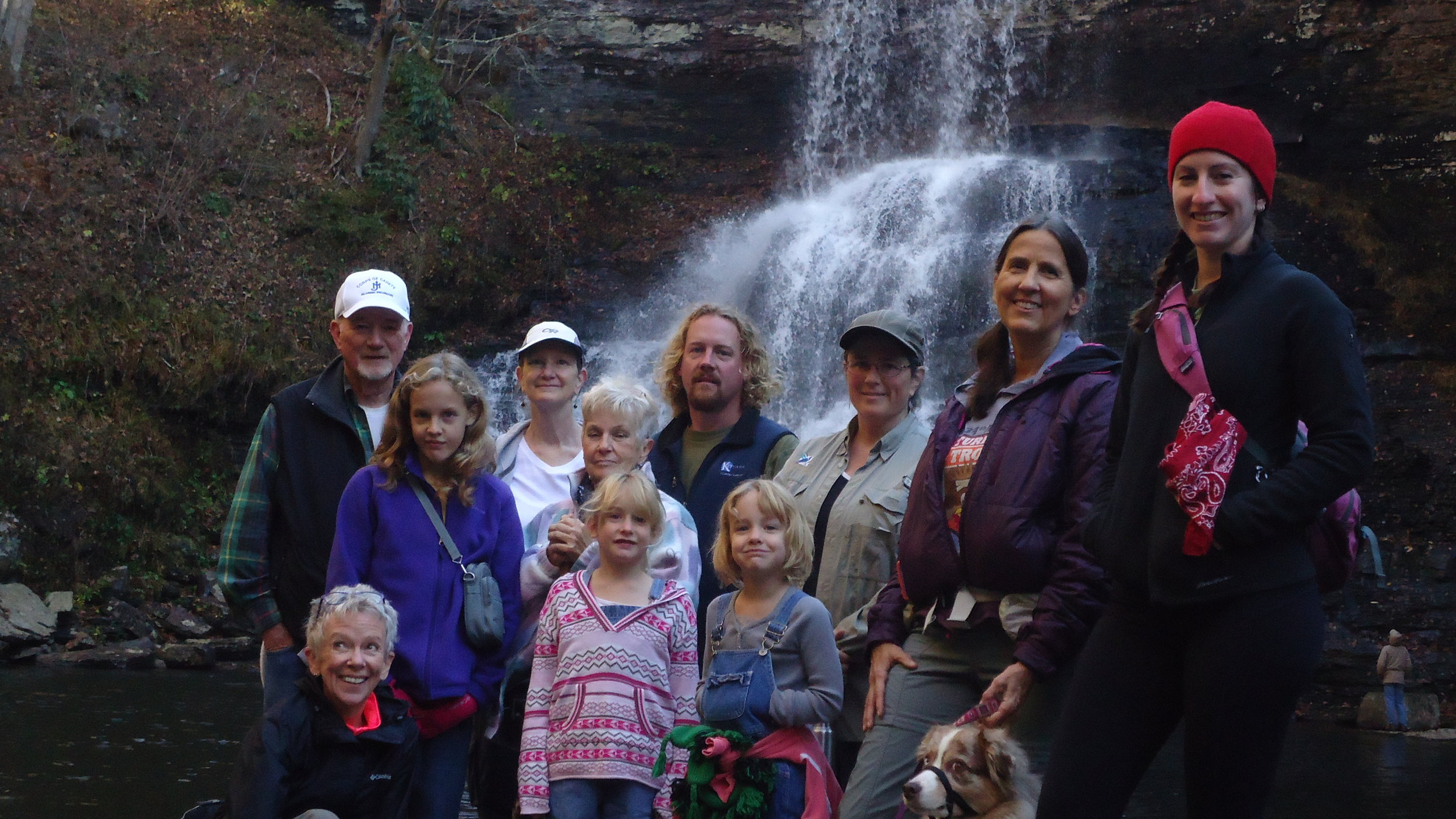 13 Explorers hiked to Cascade Falls in Giles County last Saturday. It started out a cold, misty morning, but quickly warmed as the group made their way up the trail following Big Stony Creek over many rock steps and bridges. There were a great many cascades to explore along the way, and a beautiful display of fall color overhead. Along the way, the group collected a variety of leaves for later identification.