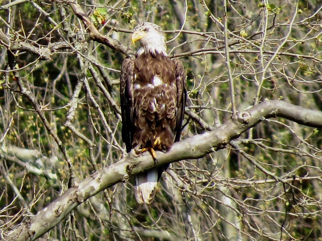 In Florida we would hardly pay attention to a bald eagle since they are relatively common. But here in Virginia they are uncommon and I noticed one while biking across the New River. This was a "dirty bird" with a mottled head and a whitish tail, showing that it is about four years old and nearing maturity. There are a small number of nests in western VA and young birds also migrate north from FL. It would be wonderful if this eagle would settle down and raise a family!