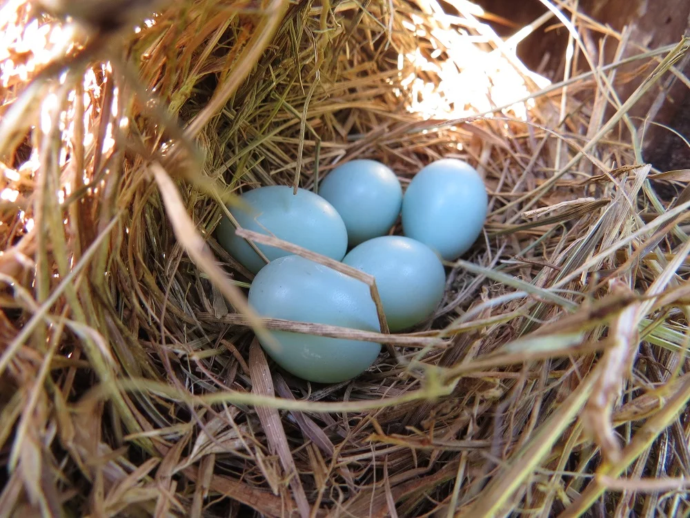 The nests of birds breeding in grasslands are rarely seen but this bluebird nest in one of our boxes epitomizes the mad rush of all birds to breed. It also illustrates the fixity of avian reproduction in that birds have a certain nest behavior that rarely varies. Thus bluebirds nest in cavities but meadowlarks nest on the ground in grasslands of a certain grass height. Such rigid behavior must have been selected through evolution but seems sometimes to be problematic as humans dominate global ecosystems. Birds that are more flexible in their behavior have a greater chance of success as the pace of change in habitats varies with human influences.