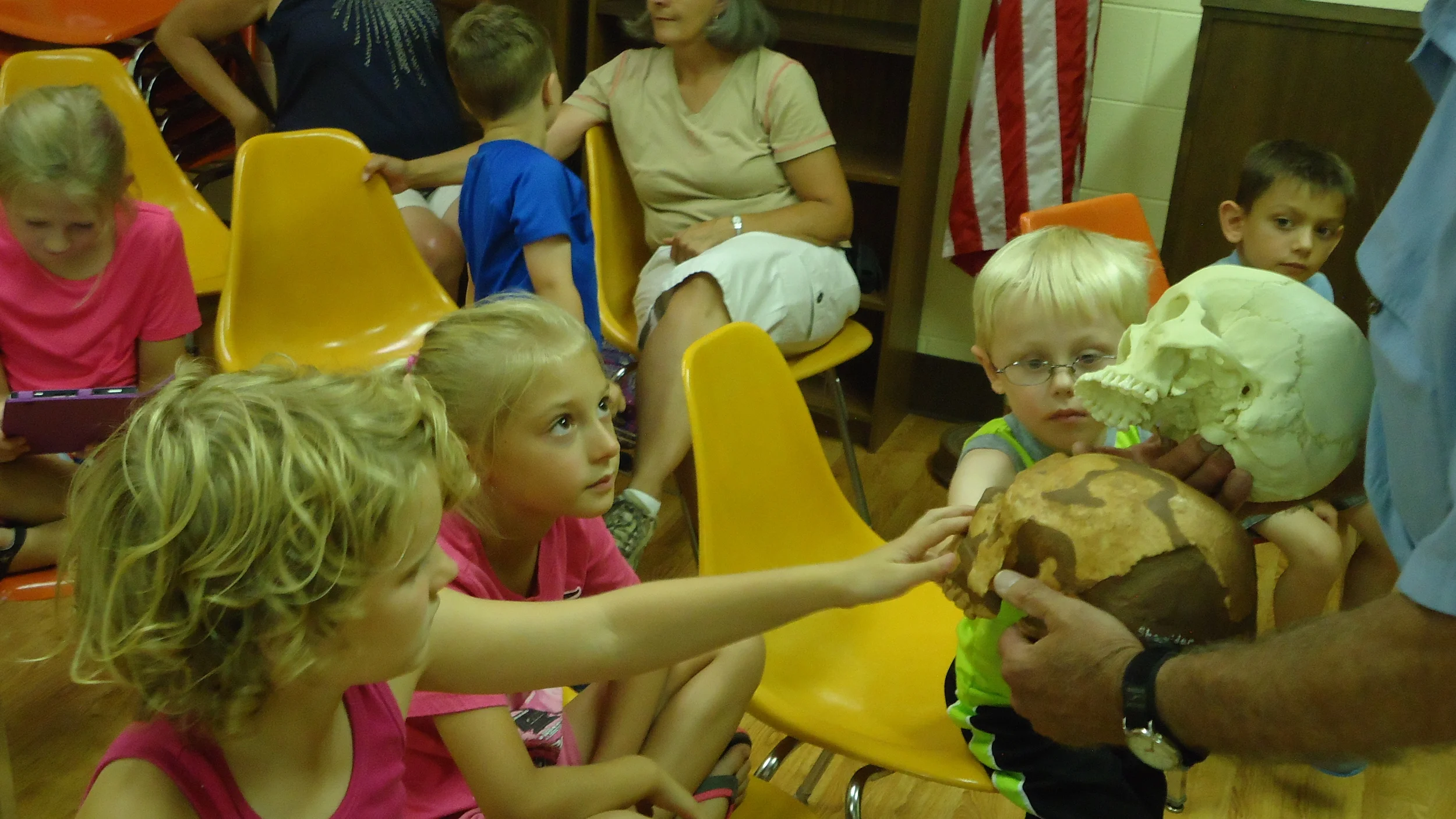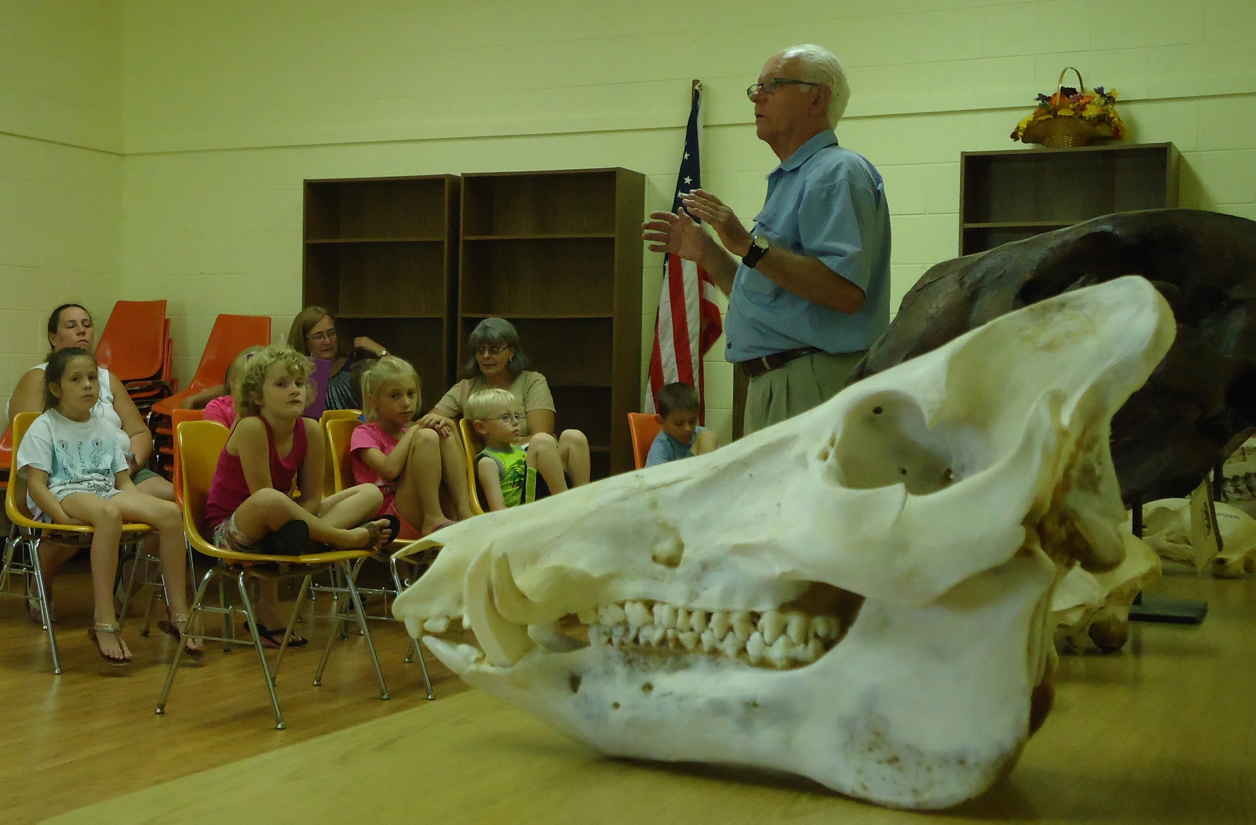 Dr. William Hylander, Duke University Professor of Anthropology Emeritus, dropped by the Grayson County Library on Friday July 8th to share his 'How Mammals Make a Living' program. With a stunning array of skulls complete with jaw bones, Bill showed how teeth define what an animal eats, how it lives and defends itself.