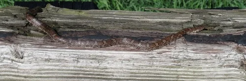 Although copperheads are venomous, they are not generally lethal. But what are some other local snakes that might be confused with copperheads? Probably the number one common snake that is often misidentified is the northern water snake, which is blotched, but has a very different look or "giz" and lacks the vertical pupil and pit.