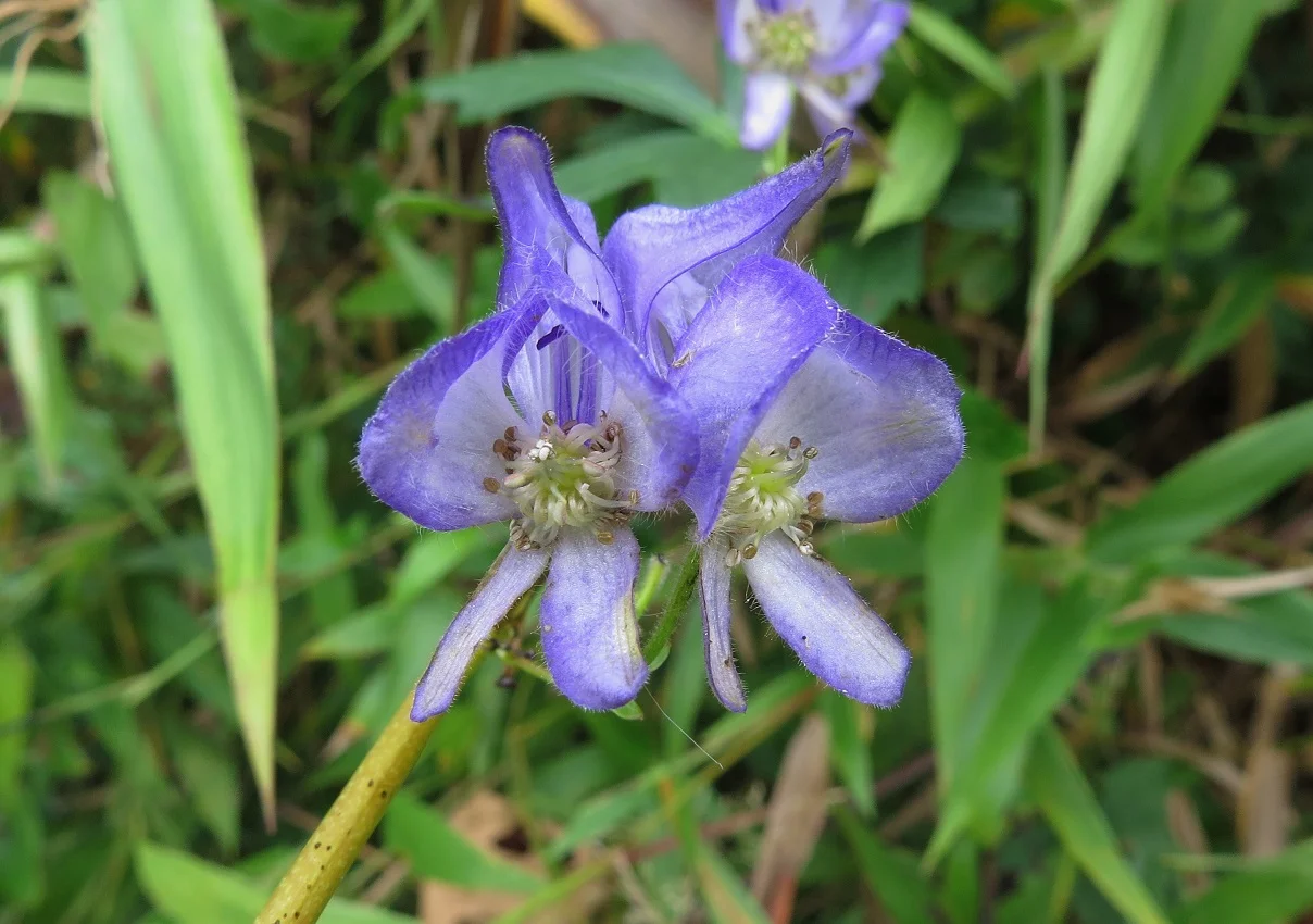 One of my favorite late blooming flowers is the monkshood, which is a classic blue, bumblebee pollinated, flower. Its shape, downwards orientation and color tells us that it specializes in attracting bumblebees. In contrast the upwards facing and easily accessible yellow flowers of wing stem attract a wide variety of insects such as this yellow/orange collared scape moth. This day-flying moth is believed to be protected against predation by its resemblance to a wasp. It also reminds me of the distasteful lightning bug/beetle. Such a variation in strategy of pollination between extreme specialization and generalization is quite remarkable and illustrates how evolution seems to explore all options that could be possible.