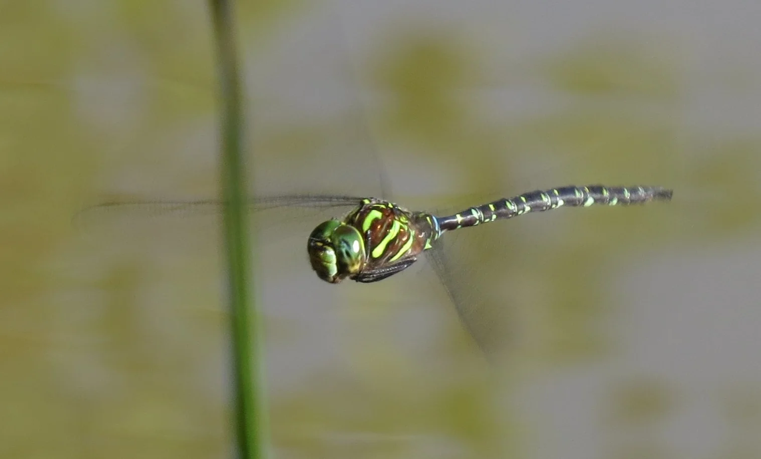 One of the reliable seasonal changes in late summer is the southern migration of the large common green darner dragonfly from our ponds. They are replaced by an equally large shadow darner (shown here) which is quite tolerant of cool weather in the fall and seems to assume the role of large insect predator patrolling the pond edges. This is an excellent example of temporal partitioning of the habitat by species that otherwise would compete with one another.