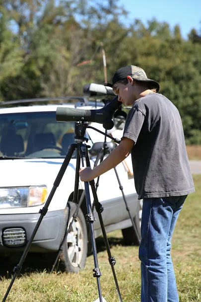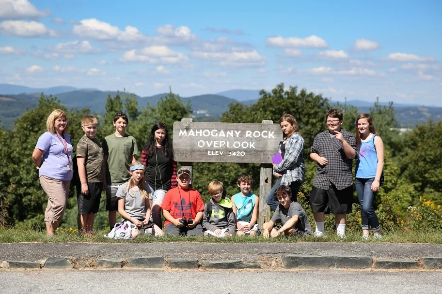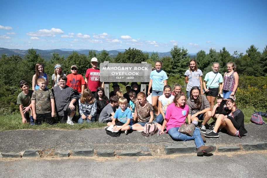 On September 23, thirty seventh graders from Grayson County Public Schools attended the Mahogany Rock Hawk Watch to experience the niche dedication of Hawk Counters and the mass migration of Broad-winged Hawks. Jim Keighton from the Blue Ridge Birders has been recording the migration of birds of prey for nearly twenty years! Each fall Jim sets up his swivel chair and interpretive displays along the parkway and begins scanning the sky. Not only does he diligently track the migration but he also takes the time to educate the passerby about the migration occurring overhead.