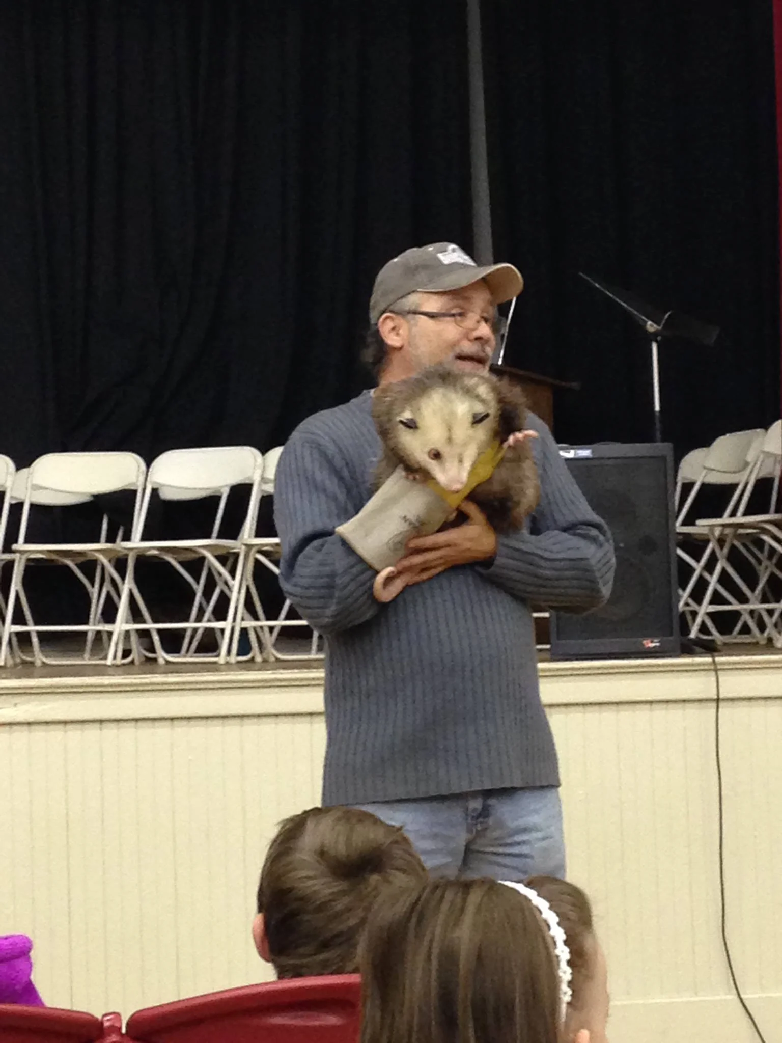 Wildlife ambassador and marsupial extraordinaire, Maggie was the star of the day. She showed up to save the kids from these horrible diseases. Not only is she a superhero, she is a super-duper superhero! Maggie was found as a baby opossum and was taken to a wildlife rehabilitator who deemed her too unhealthy to be released into the wild due to a debilitating eye disorder that rendered her blind in one eye. There was an appeal to the game department to allow Maggie to become a wildlife ambassador and help educate students about respecting wildlife and the environment.