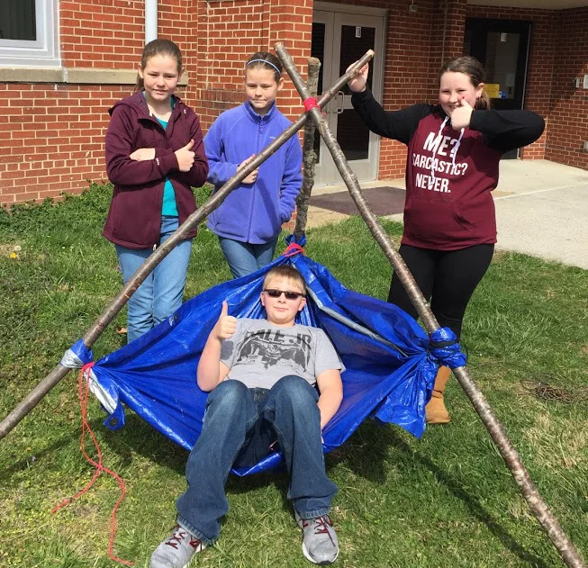Later in the week, the students learned how to make square lashings, which are used for attaching two spars perpendicular to each other. This lashing is great for constructing bridges, ladders, etc.