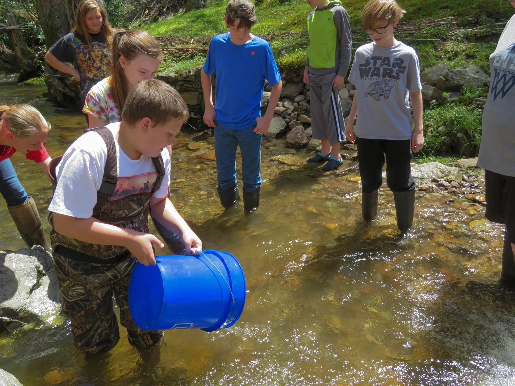 Students from Carroll County, Piney Creek in Alleghany County and Grayson Highlands School reared brook trout fingerlings from eggs for the last 4 months. Now the students get to feel the pride of releasing the young trout into local streams.