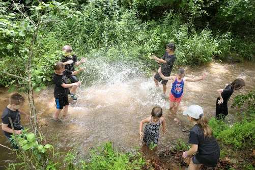From splashing in the water and examining what lives in a mountain stream, learning to use a map and compass, studying birds, bugs, flowers and rocks, nature arts and crafts, fun games and songs, to the age old pastime of dropping handcrafted vessels into the creek, exploring the Blue Ridge has never been so much fun!