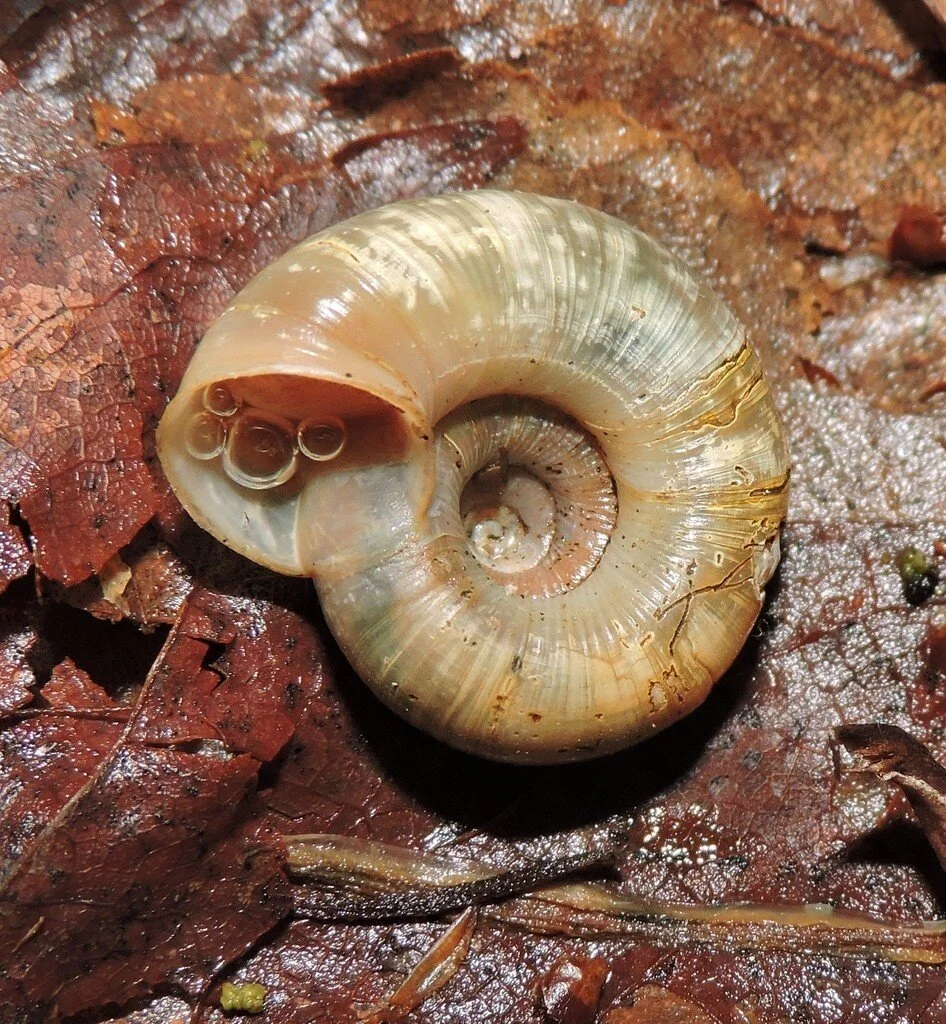 Despite this crazy, bloodthirsty life history, Haplotrema snails are relatively common and very easy to identify. The species name "concavum" comes from the snail's wide umbilicus. The umbilicus is the "hole" or "bellybutton" (or lack of one) on the underside of the snail's shell. Since the gray-foot lancetooth appears to be "coiled up" like a rope, the umbilicus is very wide and open. Also, the snail has a pale gray body to match the shell's appearance. Two other carnivorous snails are native to the Southern Appalachians, but both of these are bright blue, and one is endemic to the Smokies. The other, Vitrizonites latissimus, is endemic to the Southern Blue Ridge and has a fascinating natural history of its own. Cheers and Happy Adventuring, CADE CAMPBELL