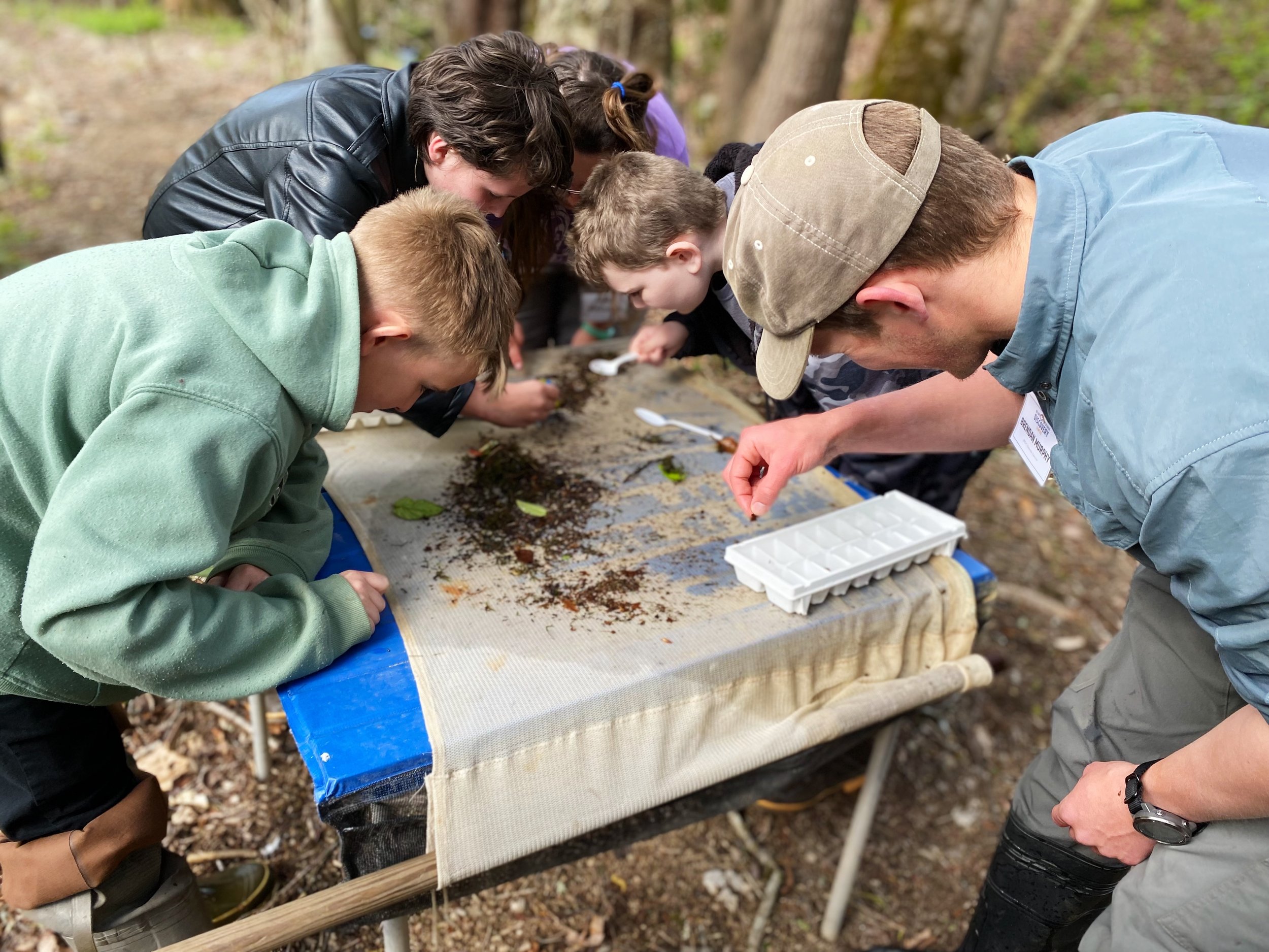 Naturalist Educators Brendan Murphy and Olivia Jackson leading a stream ecology program.
