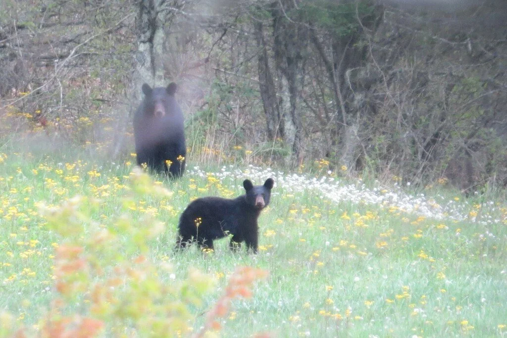 Black bears are back! We observed a healthy family of bears in Fairwood Valley last week. The mother successfully raised three cubs last year we observed several times throughout the year, and they will remain a nomadic family unit this year. Early mornings and evenings are the best time to see bears foraging, but it is an unusual treat. Unlike other, more populous areas in the Southern Appalachians, the bears found in the Mt. Rogers region are rarely habituated, or accustomed to humans. Most are still very reclusive and fearful of humans, and it’s a unique privilege to see one of these truly wild bears. Since they utilize ancient strategies to find food, instead of raiding dumpsters, coolers, and picnic baskets, black bear signs are abundant. Right now, many black bears survive the surprisingly lean spring season by flipping rocks in streams to hunt salamanders, similar to herpetological adventures at the rally. However, unlike the humans attending our programs, bears are allowed to eat the salamanders.