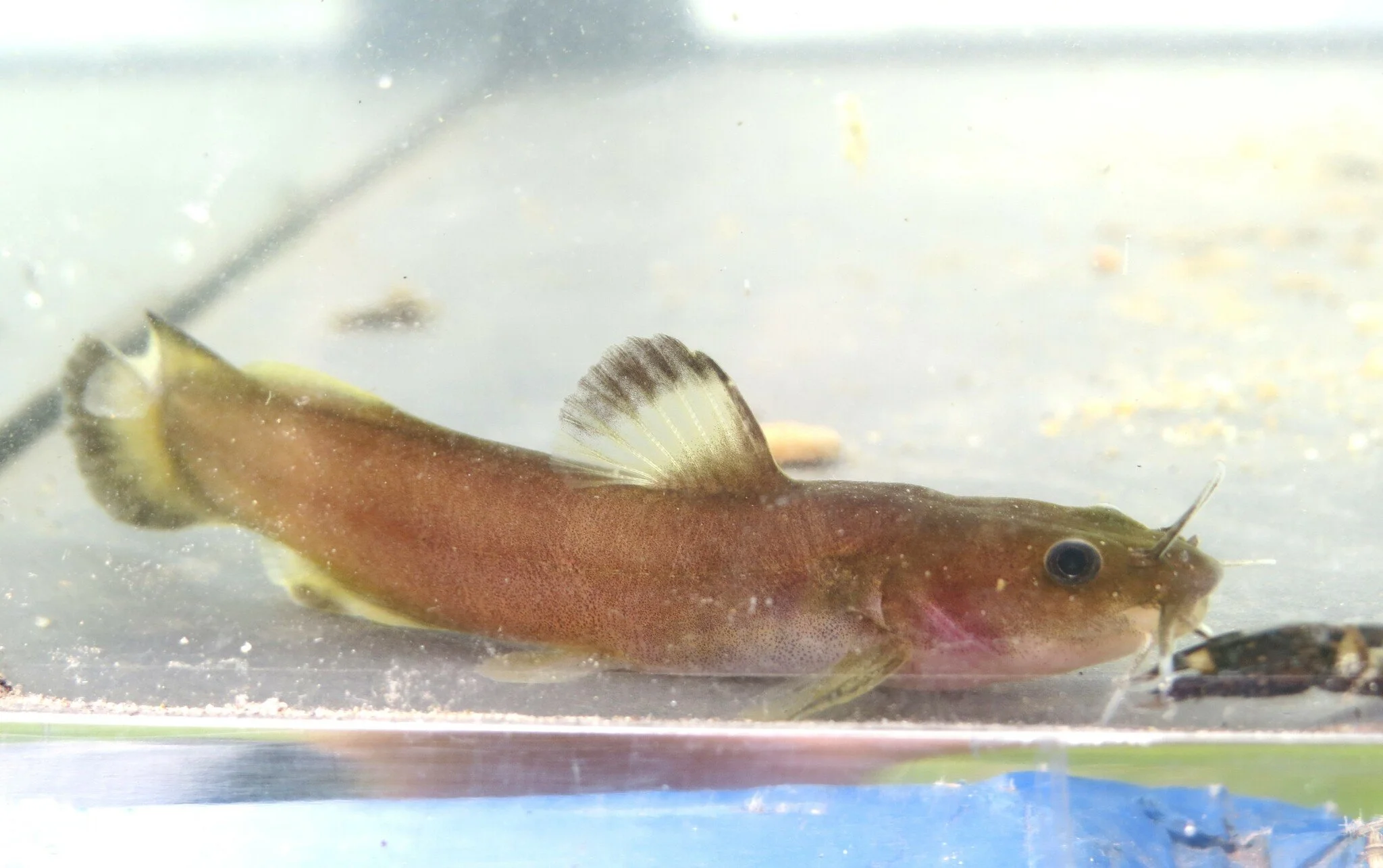 A Margined Madtom (Noturus insignis) captured accidentally during an aquatic macroinvertebrates program with Fries School. Photo by Cade Campbell.