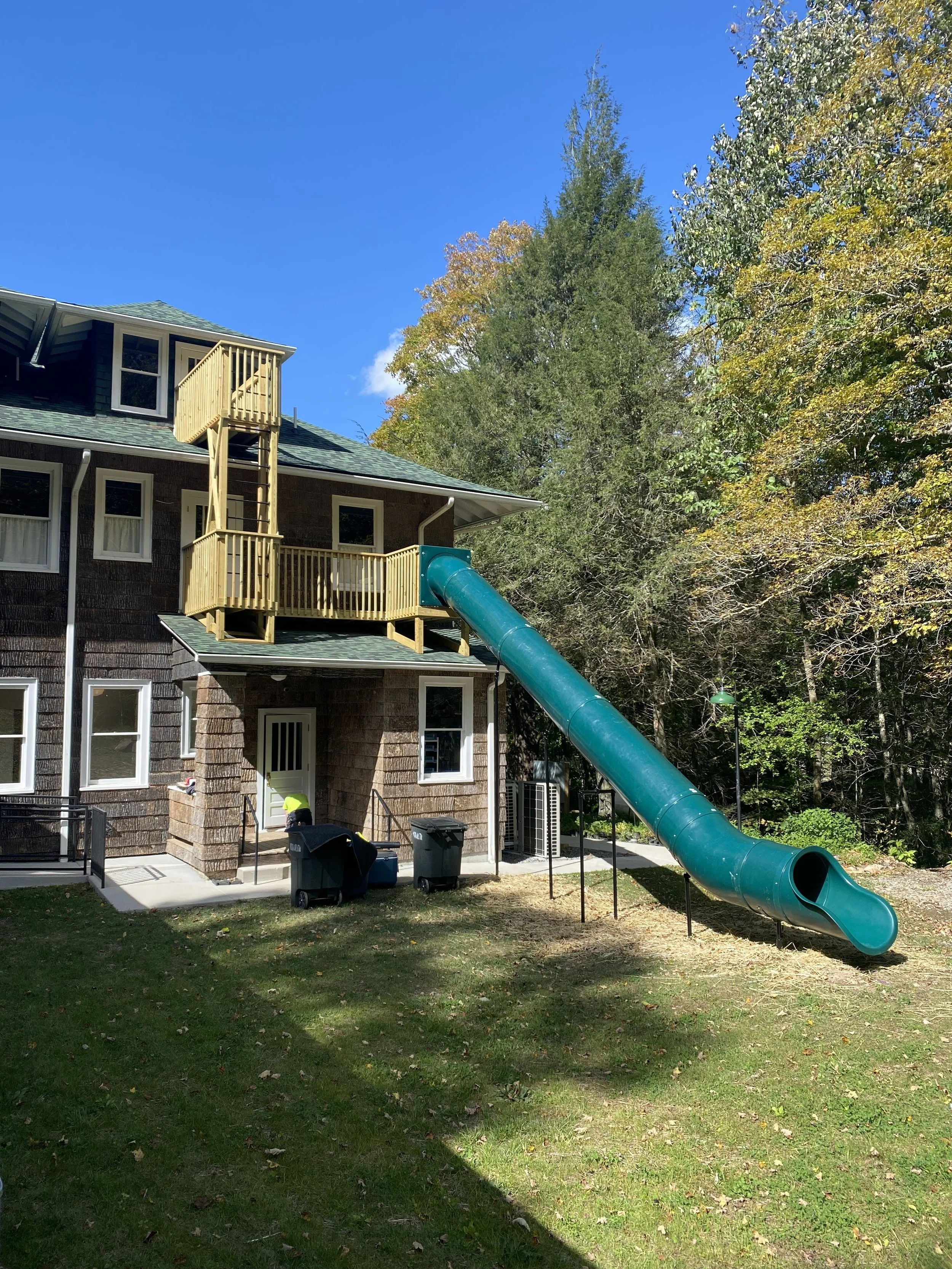 A guest favorite, our two story slide launches out of the second floor of the schoolhouse and doubles as an emergency exit for the building.